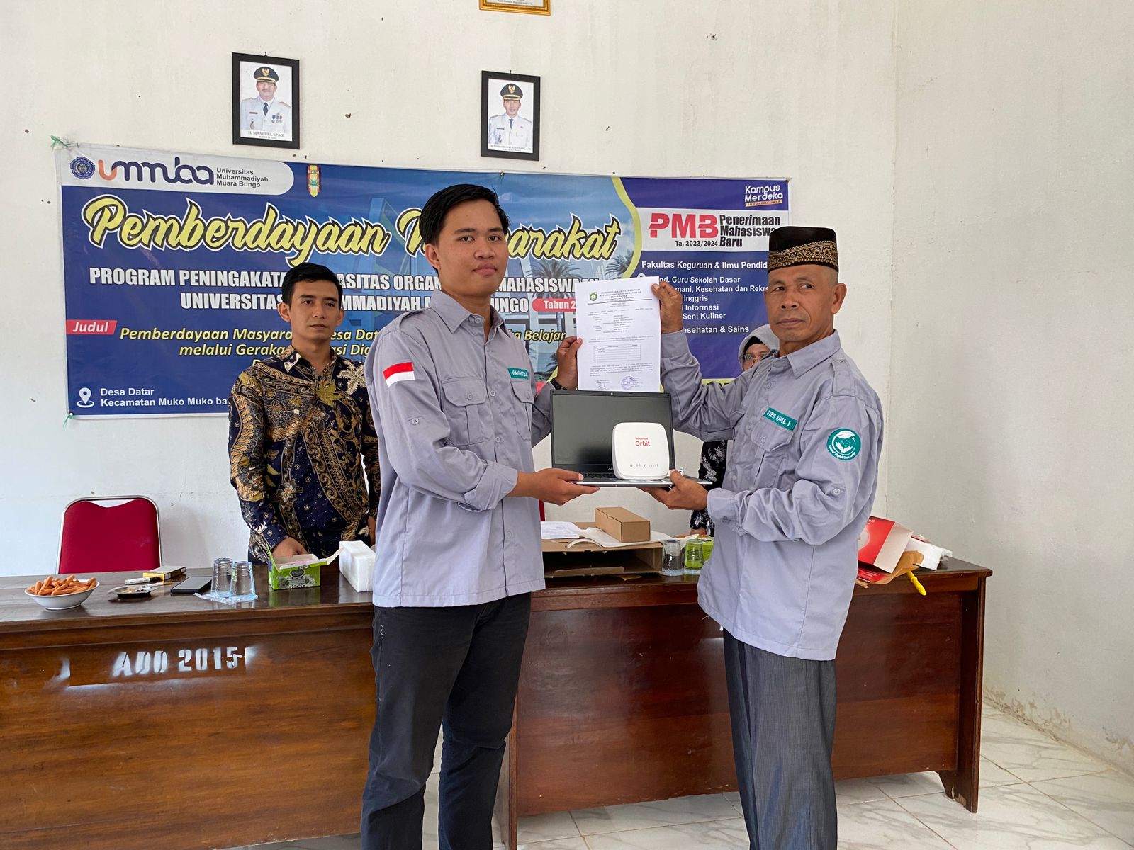 UMMUBA.AC.ID – (21/11/23) Program Peningkatan Kapasitas Organisasi Kemahasiswaan Universitas Muhammadiyah Muara Bungo (PKK Ormawa IMM UMMUBA) di Desa Datar resmi ditutup pada tanggal 20 November 2023 tepatnya kemarin, dalam sebuah acara yang penuh kehangatan. Kegiatan ini diselenggarakan oleh tim PKK ORMAWA IMM UMMUBA dan dihadiri oleh sekitar 30 orang peserta, termasuk warga desa Datar, tim PPK Ormawa UMMUBA, perangkat desa Datar, dan dua dosen Universitas Muhammadiyah Muara Bungo, Bapak Arisman Sabir, M.Pd, serta Ibu Fitri Yanti, S.Pd., M.Pd.T.
